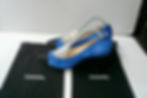 CHANEL Boots compensées cuir bleu et noir superbes T41 TBE